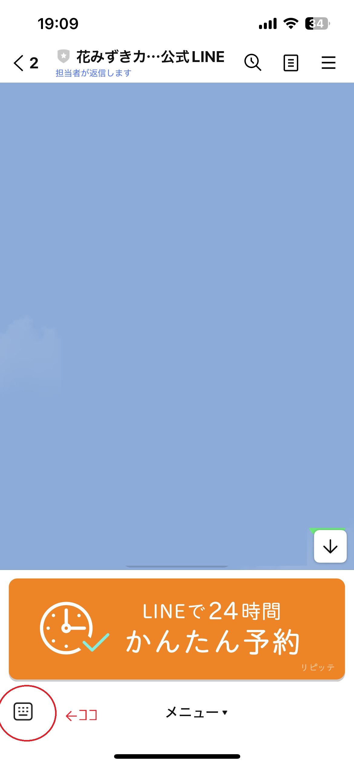 メッセージの入力は、画面左下隅にある四角いボタンをタップすると表示されます。